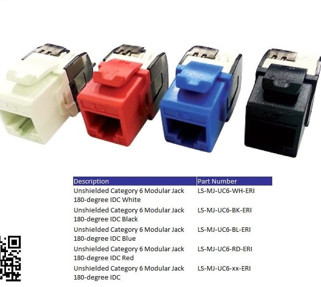 180o Unshielded CAT6 Modular Jack w/ T568A/B Label,ERI type,xx